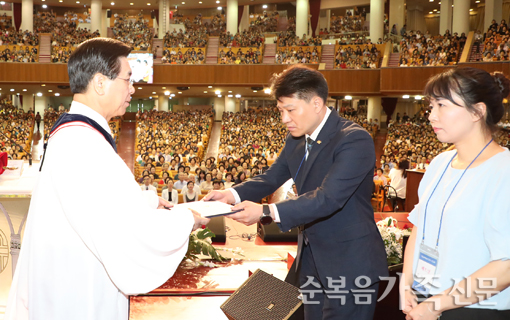 ÀÌ»óÀ± ¸ñ»ç, È«Äá ¼±±³»ç ÆÄ¼ÛÀå ¹Þ¾Æ