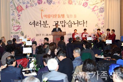 »ç´Ü¹ýÀÎ ¾Æ¸§´Ù¿îµ¿ÇàÀÌ Ã¢°£ 11ÁÖ³âÀ» ¸Â¾Æ °¨»ç¿Í ÃàÇÏÀÇ ÀÚ¸®¸¦ ¿¾ú´Ù. Áö³´Þ 28ÀÏ Áß¼Ò±â¾÷ȸ°ü¿¡¼ ¿¸° Çà»ç¿¡¼ °¨»ç¿îµ¿À§¿øÀå ÀÌ¿µÈÆ ¸ñ»ç´Â 'Çϳª´ÔÀÇ ¶æÀ» ÀÌ·ç´Â »î'(¿ä.... ¤Ó±èÁÖ¿µ ±âÀÚ 2017-12-10