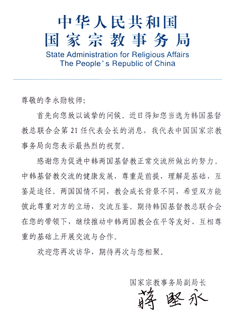 Áß±¹ Á¾±³±¹ ÇѱâÃÑ ´ëǥȸÀå ÃëÀÓ ÃàÇÏ Àü¹® º¸³»¿Í
