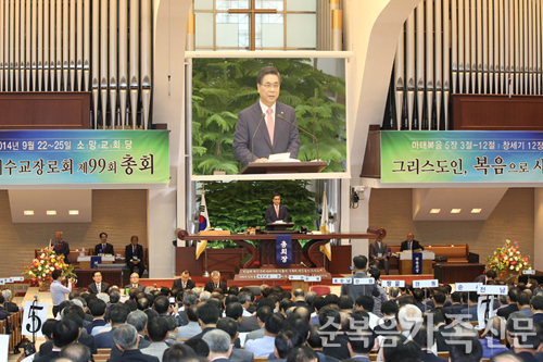 ±âµ¶±³´ëÇÑÇϳª´ÔÀǼºÈ¸(¿©Àǵµ¼øº¹À½) ÃÑȸÀå ÀÌ¿µÈÆ ¸ñ»ç´Â 24ÀÏ ¼Ò¸Á±³È¸¿¡¼ ¿¸° ´ëÇÑ¿¹¼ö±³Àå·Îȸ ÅëÇÕÃÑȸ Á¦99ȸ Á¤±âÃÑȸ¸¦ ¹æ¹®ÇØ Ãà»çÇß´Ù. ÀÌ¿µÈÆ ¸ñ»ç´Â ¡°Á¦99ȸ Á¤±âÃÑ.... ¤ÓÁ¤½Âȯ ±âÀÚ 2014-09-28