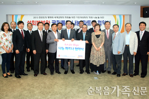 ºó°ï¾Æµ¿¡¤´Ù¹®È°¡Á¤ À§ÇØ ¡®Èñ¸Á³ª´®¡¯ °øµ¿ÁøÇà 2013 ÇѹݵµÀÇ ÆòÈ¿Í ¼¼°è±³È¸ÀÇ Èñ¸ÁÀ» À§ÇÑ ±âµµ´ë¼ºÈ¸¸¦ ÁÖ°üÇÏ´Â ¼ºÈ¸º»ºÎ(º»ºÎÀå ±è±¤´ö ¸ñ»ç)¿Í ±¹Á¦±¸È£°³¹ß ±ÂÇÇÇÃ(ȸÀå .... ¤Ó¿ÀÁ¤¼± ±âÀÚ 2013-07-07