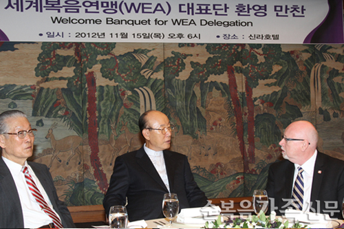 Á¶¿ë±â ¸ñ»ç ¡°Çѱ¹±³È¸ ´õ¿í ºÎÈïÇÏ°Ô µÉ °Í¡±¼¼°èº¹À½¿¬¸Í(WEA) ´ëÇ¥´Ü ȯ¿µ ¸¸ÂùÀÌ 15ÀÏ ½Å¶óÈ£ÅÚ ¿À۵å·ë¿¡¼ ¿·È´Ù.2014³â¿¡ ¿¸± WEA ÃÑȸÀÇ ¼º°øÀûÀÎ °³ÃÖ¸¦ À§ÇØ .... ¤ÓÀ̹̳ª ±âÀÚ 2012-11-18