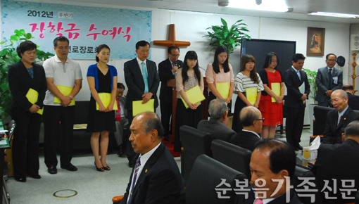 2012³â Èı⠿¬·ÎÀå·Îȸ(ȸÀå ±è»ç°â ¿¬·ÎÀå·Î) ÀåÇÐÁõ¼¼ö¿©½ÄÀÌ 19ÀÏ ¼¼°è¼±±³¼¾ÅÍ 7Ãþ ¿¬·ÎÀå·Îȸ½Ç¿¡¼ ÀÖ¾ú´Ù. ±è»ç°â Àå·ÎÀÇ »çȸ·Î ÁøÇàµÈ À̳¯ Çà»ç¿¡¼ ¿¬·ÎÀå·Îȸ´Â ¼øº¹.... ¤Óº¹¼øÈñ ±âÀÚ 2012-08-26