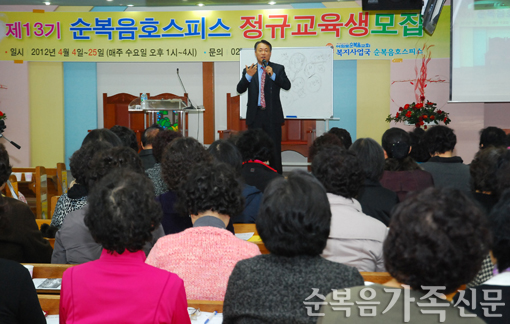 º¹Áö»ç¾÷±¹ ¼øº¹À½È£½ºÇǽº(´ã´ç ±èÇѼö ¸ñ»ç)°¡ Á¦13±â È£½ºÇǽº Á¤±Ô±³À° °³°¿¹¹è¸¦ 4ÀÏ ¼¼°è¼±±³¼¾ÅÍ 1Ãþ ¼£·Ò¼ºÀü¿¡¼ µå·È´Ù. È£½ºÇǽº ºÀ»ç´Â ¸»±â ¾Ï ȯ¿ìµéÀÌ Ãµ±¹¿¡ ´ëÇÑ .... ¤Ó±èÁ¤¿¬ ±âÀÚ 2012-04-08