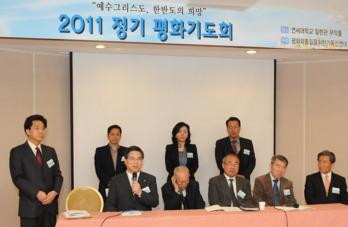 "³²ºÏÅëÀÏ À§ÇÑ »ç¶ûÀÇ ½Çõ°ú ¼¶±è ¾ÕÀ塱ºÏÇÑ¿¡ ´ëÇÑ ÀεµÀû Áö¿ø À§ÇØ ±âµµºÎŹ ÀÌ¿µÈÆ ´ãÀÓ¸ñ»ç´Â 7ÀÏ ¿¬¼¼´ëÇб³ ¾Ë·»°ü¿¡¼ ¿¸° ¡®ÆòÈ¿Í ÅëÀÏÀ» À§ÇÑ ±âµ¶Àο¬´ë¡¯(ÀÌÇÏ ÆòÅë.... ¤ÓÁ¤½Âȯ ±âÀÚ 2011-04-08