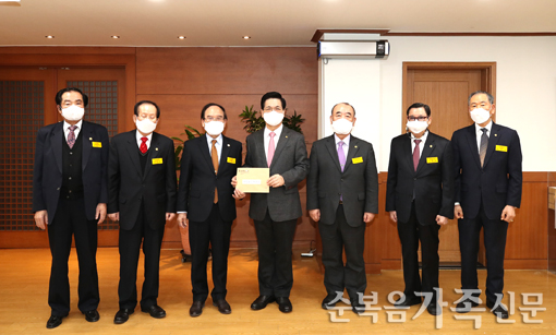 ¿¬·ÎÀå·Îȸ°¡ 3ÀÏ ¼ºÀüºñ¼½Ç¿¡¼ »ç¶û³ª´® ¼º±Ý Àü´Þ½ÄÀ» °¡Á³´Ù. À¯ÁßÈÆ ¿¬·ÎÀå·ÎȸÀå°ú ÀÓ¿øµéÀº »ýȰÀÌ ¾î·Á¿î ¼ºµµµéÀ» À§ÇØ »ç¿ëÇØ´Þ¶ó¸ç ÀÌ¿µÈÆ ´ãÀÓ¸ñ»ç¿¡°Ô 1000¸¸¿øÀ» Àü´ÞÇß´Ù..... ¤ÓÀ̹̳ª ±âÀÚ 2021-02-07