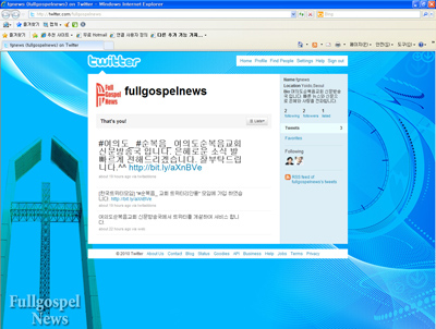 ½Å¹®¹æ¼Û±¹ÀÌ Æ®À§Å͸¦ ÅëÇØ ¼ºµµµé°ú ¼ÒÅëÀ» ½ÃÀÛÇß´Ù.¡®¼øº¹À½´º½º Æ®À§ÅÍ¡¯¿¡ ÆÈ·ÎÀ×Çϸé FGTVÀÇ ÄÁÅÙÃ÷¿Í °¡Á·½Å¹®ÀÇ ±â»çµéÀ» º¼¼ö ÀÖ´Ù. ±³È¸¾ÈÀÇ °¢Á¾ ¼Ò½Äµé°ú ¾È³»µîÀ» ½Å¼ÓÇÏ.... ¤ÓÀÓÈÆ ±âÀÚ 2010-08-13