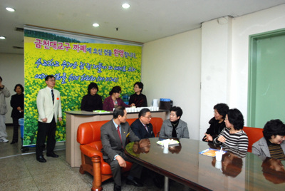 ´ë±³±¸»ç¹«½Ç ¾Õ ÈÞ½Ä °ø°£ ¸¶·Ã»õ½ÅÀÚ È¯¿µ°ú ¼ºµµ ÆíÀÇ À§ÇØ ±Ýõ´ë±³±¸(´ë±³±¸Àå ÃÖÀÎȸ ¸ñ»ç)°¡ ¼ºµµµéÀÇ È޽İø°£ ±ÝõīÆä¸¦ °³ÀåÇß´Ù. Áö³ 1¿ùºÎÅÍ ±Ýõ´ë±³±¸´Â ´ë±³±¸»ç¹«.... ¤Óº¹¼øÈñ ±âÀÚ 2009-02-06