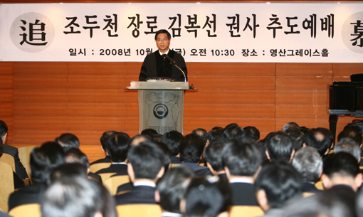 °¢°ø Á¶µÎõ ¿ø·ÎÀå·Î¿Í ±èº¹¼± ±Ç»ç Ãßµµ¿¹¹è°¡ 3ÀÏ CCMMºôµù 11Ãþ ±×·¹À̽ºÈ¦¿¡¼ 200¿© ¸íÀÇ °ü°èÀÚµéÀÌ Âü¼®ÇÑ °¡¿îµ¥ ¿·È´Ù. À̳¯ ÀÌ¿µÈÆ ´ãÀÓ¸ñ»ç°¡ ¡®¾ßÈѸ¦ °æ¿ÜÇÏ´Â .... ¤ÓÀ̼ÒÈç ±âÀÚ 2008-10-03