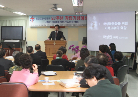 ·Î°í½º±³¼ö¼±±³È¸ ⸳ 27ÁÖ³â ¸Â¾Æ ¹Ú¼º¹Î Àå°©´ö ¸ñ»ç ÃÊû ¼¼¹Ì³ª ¿¾î Ä·ÆÛ½º¿¡¼ ±³¼ö¿Í ÇлýµéÀÇ º¹À½È¸¦ À§ÇØ Á¤ÁøÇؿ ·Î°í½º±³¼ö¼±±³È¸(ȸÀå ¹Ú¼º¹è Àå·Î)°¡ ⸳ 27ÁÖ.... ¤Ó¿ÀÁ¤¼± ±âÀÚ 2007-03-02