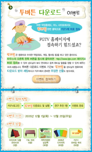 Âù¾ç°ú ÀÎÅͳÝÀ¸·Î °¨µ¿ ¡®ÆÅÆÅ¡¯¼øº¹À½¹æ¼Û±¹Àº ¾î¶² ÀÛ¾÷ Áß¿¡µµ °£´ÜÇÏ°Ô FGTV ȨÆäÀÌÁö¿¡ Á¢¼ÓÇÒ ¼ö ÀÖ´Â Åõ¹öư À̺¥Æ®¸¦ 25ÀϱîÁö °³ÃÖÇÑ´Ù. Åõ¹öưÀº ¿ÞÂʰú ¿À¸¥ÂÊ ¹öưÀ» µ¿½Ã.... ¤ÓÀ̹̳ª ±âÀÚ 2005-12-02