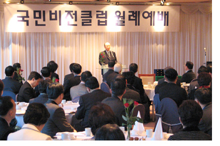 ±¹¹ÎºñÀüŬ·´ ¿ù·Ê¿¹¹è°¡ Áö³ 6ÀÏ CCMMºôµù ¿ìºÀȦ¿¡¼ °³ÃֵƴÙ. Á¶¿ë±â ¸ñ»ç´Â À̳¯ ¸¶Åº¹À½ 18Àå 21ÀýÀ» ±Ù°Å·Î ¡°¸ðµç °ÍÀÌ Àý¸ÁÀûÀÏ ¶§ Çϳª´Ô²² °¨»ç±âµµ¸¦ ¸ÕÀúÇØ¾ß ÇÑ´Ù¡±.... ¤Ó2004-03-13