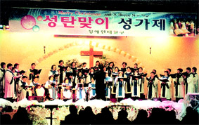Àå¾ÖÀδ뱳±¸ Àü ¼ºµµ°¡ ¾Æ±â ¿¹¼öÀÇ Åº»ýÀ» ÃàÇÏÇϱâ À§ÇØ ÇÑÀÚ¸®¿¡ ¸ð¿´´Ù. Áö³ 20ÀÏ ¿ÀÈÄ 5½Ã ¹Ù¿ï¼ºÀü¿¡¼ ¿¸° ¼ºÅº¸ÂÀÌ ¼º°¡Á¦´Â Àå¾ÖÀδ뱳±¸ Áöü,½Ã°¢, û°¢, ¾Æµ¿ ±³±¸ µî.... ¤Ó2003-12-26