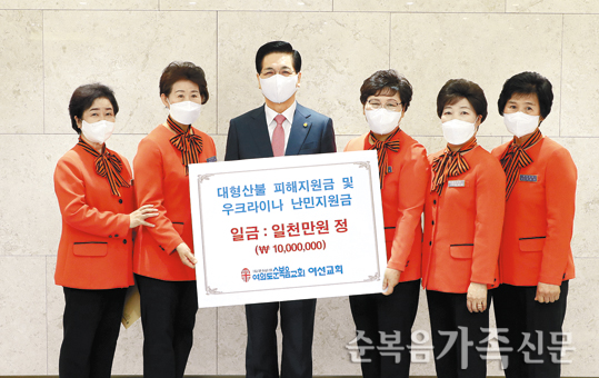 ¿©¼±±³È¸ ÃÖ¼ø¿ ȸÀå°ú ÀÓ¿øµéÀÌ 20ÀÏ ¼ºÀüºñ¼½Ç¿¡¼ ´ëÇü»êºÒ ÇÇÇØÁö¿ø±Ý ¹× ¿ìÅ©¶óÀ̳ª ³¹ÎÁö¿ø±Ý 1000¸¸¿øÀ» ÀÌ¿µÈÆ ´ãÀÓ¸ñ»ç¿¡°Ô Àü´ÞÇß´Ù. .. ¤ÓÀ̹̳ª ±âÀÚ 2022-04-24
