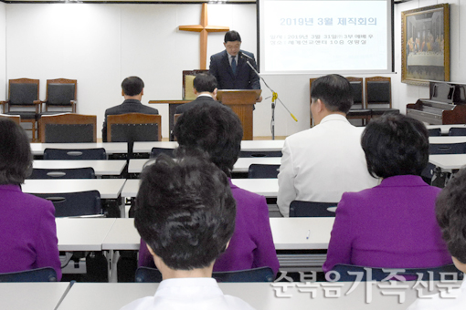 3¿ù Á¦Á÷ȸÀǰ¡ 31ÀÏ ¼¼°è¼±±³¼¾ÅÍ 10Ãþ »óȲ½Ç¿¡¼ ±³¹«±¹Àå ±è¼º¸¸ ¸ñ»çÀÇ »çȸ·Î ÁøÇàµÆ´Ù. °æ¸®±¹Àå ÀÌÁ¾¿í Àå·Î´Â Ãѹ«±¹°ú °æ¸®±¹ ¾÷¹« º¸°í¸¦ ÅëÇØ ±âµµ¿ø ½Ç·Î¾Ï¼ºÀü °ÇÃàÀÌ °ø.... ¤Óº¹¼øÈñ ±âÀÚ 2019-04-07