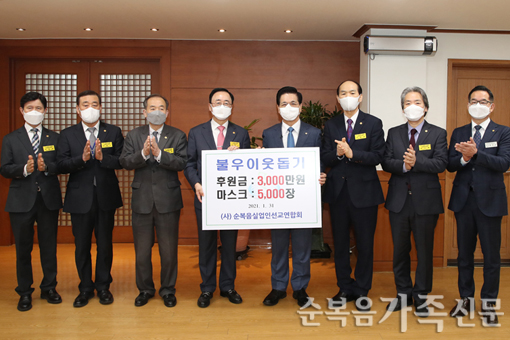 ÈÄ¿ø±Ý 3000¸¸¿ø¡¤¸¶½ºÅ© 5000Àå Àü´Þ»ç´Ü¹ýÀÎ ¼øº¹À½½Ç¾÷Àμ±±³¿¬ÇÕȸ°¡ ¼³³¯À» ¾ÕµÎ°í 1¿ù 31ÀÏ ¼ºÀüºñ¼½Ç¿¡¼ ºÒ¿ìÀÌ¿ôµ½±â ÈÄ¿ø±Ý Àü´Þ½ÄÀ» °¡Á³´Ù. À̳¯ Á¤Ãæ½Ã ȸÀåÀº ÀÌ¿µÈÆ .... ¤ÓÀ̹̳ª ±âÀÚ 2021-02-07