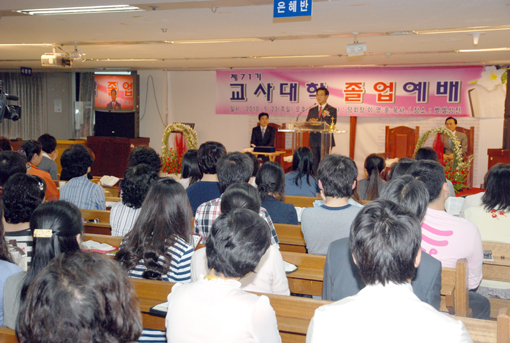 ¡°¿Á¤ °¡Áö°í »ç¸í °¨´çÇÒ °Í¡± °Á¶ ±³È¸Çб³(±³Àå Á¤Àç¸í ¸ñ»ç) Á¦71±â ±³»ç´ëÇÐ Á¹¾÷¿¹¹è°¡ 23ÀÏ ¼¼°è¼±±³¼¾ÅÍ 11Ãþ º¦¿¤¼ºÀü¿¡¼ °³ÃֵƴÙ. ÀÌ¿µÈÆ ´ãÀÓ¸ñ»ç¸¦ °»ç·Î ÃÊû.... ¤Óº¹¼øÈñ ±âÀÚ 2010-05-28