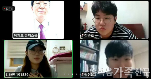 ±³È¸Çб³ ¿¹Á¦¸ðťƼ½ºÄðÀÌ 9¿ù 20ÀϺÎÅÍ ÁÜ(ZOOM)À» Ȱ¿ëÇØ ¿Â¶óÀΠťƼ³ª´®À» ½ÃÀÛÇß´Ù. ¿¹Á¦¸ðťƼ½ºÄð ¿Â¶óÀÎ È»ó ťƼ³ª´®Àº ÇлýµéÀÌ ÇÑ ÁÖ°£ °¢ÀÚÀÇ °¡Á¤¿¡¼ ¹¬»óÇÑ ¸»¾¸ ³».... ¤Ó±ÝÁöȯ ±âÀÚ 2020-10-04