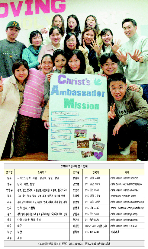 ´Ù¾çÇÑ µ¿¾Æ¸® Ȱµ¿ Ȱ¼ºÈ 30´ë ÀÌ»ó û³âµéÀÌ È°µ¿Çϴ û³â±¹ Ä«¸®½ºÃ»³â¼±±³È¸´Â °£Á¢ÀûÀÎ ±âµ¶±³ ¹®È È®»ê¿¡ ÁÖ·ÂÇϰí ÀÖ´Ù. ¿ÃÇØ 3¿ù 5ºÎ ¿¹¹è¿¡¼ ±³¿ªÀÚ ¿ö½Ê ¡®Á¶ÀÌÇ® °ø¿¬.... ¤Ó2003-11-22