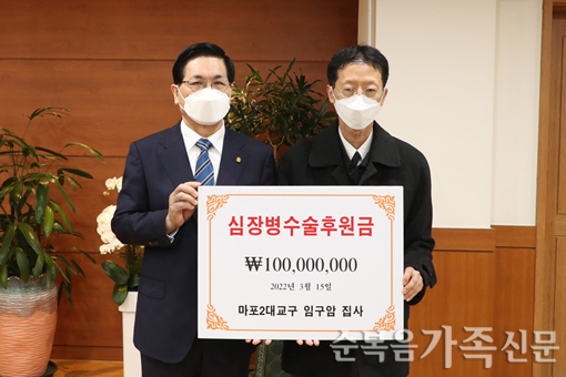 ¸¶Æ÷2´ë±³±¸ 7±³±¸ ÀÓ±¸¾Ï Áý»ç°¡ 15ÀÏ ¼ºÀüºñ¼½Ç¿¡¼ ÀÌ¿µÈÆ ´ãÀÓ¸ñ»ç¿¡°Ô ½ÉÀ庴 ¼ö¼ú ÈÄ¿ø±Ý 1¾ï¿øÀ» Àü´ÞÇß´Ù. ÀÌ¿µÈÆ ¸ñ»ç´Â "¿¹¼ö´ÔÀÇ »ç¶ûÀ¸·Î ³ª´©°í ¼¶°Ü Áּż °¨»çÇÏ´Ù"¸ç.... ¤Ó±è¿ëµÎ ±âÀÚ 2022-03-20