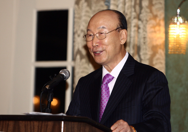 ÇѼ¼´ë ±è¼ºÇýÃÑÀåÀÌ Âü¼®Àڵ鿡°Ô Àλ縻À» ÀüÇϰí ÀÖ´Ù.