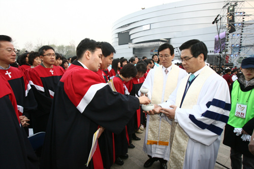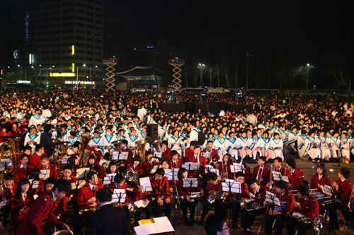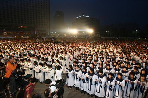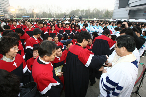 2009 ºÎȰÀý ¿¬ÇÕ¿¹¹è°¡ ºÎȰÀýÀ» ¸Â¾Æ 12ÀÏ »õº® 'ºÎȰ°ú ¼Ò¸Á'À»ÁÖÁ¦·Î ¼¿ï½Ãû¾Õ ¼¿ï±¤Àå¿¡¼ µå·ÁÁ³´Ù. ºÎȰÀý¿¬ÇÕ¿¹¹è¸¦ ÅëÇØ Çѱ¹±³°è´Â °íÅë¿¡ ÀÖ´Â Çѱ¹»çȸ¿¡ Èñ¸ÁÀÇ ¸Þ½ÃÁö¿Í ±×¸®½ºµµÀÇ »ç¶ûÀ» ÀüÇÏ´Â ±ÍÇÑ ½Ã°£À» °¡Á³´Ù. ÇÑÆí ÀÌ¿µÈÆ ¸ñ»ç´Â À̳¯ ¿¹¹è¿¡¼ ´ëÇ¥±âµµ¿Í ¼º¸¸Âù ¿¹½Ä¿¡ Âü¼®Çß´Ù.