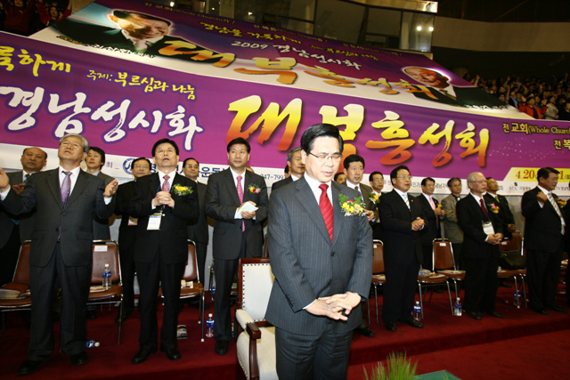 2009 °æ³²¼º½ÃÈ ´ëºÎÈZȸ°¡ 4¿ù20-21ÀÏ ¾çÀϰ£ °æ³² â¿ø½Ç³»Ã¼À°°ü¿¡¼ ¿·È´Ù. ¿©Àǵµ¼øº¹À½±³È¸ ÀÌ¿µÈÆ ´ãÀÓ¸ñ»ç´Â 21ÀÏ ÁÖ°»ç·Î Âü¼®ÇØ, ¿äÇѺ¹À½ 20Àå 19Àý¿¡¼ 23ÀýÀÇ ¸»¾¸À» Áß½ÉÀ¸·Î '±×¸®½ºµµÀÎÀÇ 4´ë Ãູ'À̶õ Á¦¸ñÀÇ ¸»¾¸À» ÅëÇØ °æ³²Áö¿ªº¹À½È¸¦ À§ÇÑ Èñ¸ÁÀÇ ¸Þ½ÃÁö¸¦ ÀüÇß´Ù.