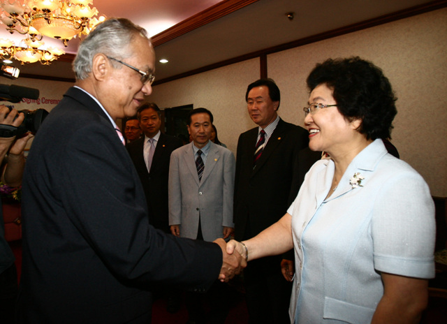 ÇѼ¼´ëÇб³ ±è¼ºÇýÃÑÀåÀº 13ÀÏ Å±¹ÀÇ Ä¡¾Ó¸¶ÀÌ ´ëÇÐÀ» ¹æ¹®ÇØ ÇùÁ¤½ÄÀ» ¸Î°í, ¾ÕÀ¸·Î ¾ç´ëÇÐ »çÀÌÀÇ È°¹ßÇÑ ±³·ù¿Í Çù·Â¿¡ ´ëÇØ ³íÀÇÇß´Ù.