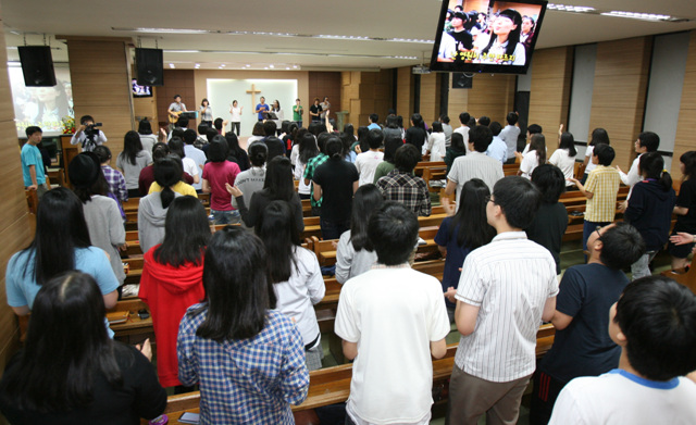¸ÅÁÖ ±Ý¿äÀÏ Àú³á¿¡ Á¦2±³À°°ü 4Ãþ ¿¹¹è½Ç¿¡¼´Â ¿ì¸®±³È¸ û¼Ò³âµéÀÇ Ã¶¾ß¿¹¹è°¡ µå·ÁÁø´Ù. ¹Ì·¡ ¼øº¹À½ ¸®´õµéÀÇ ¶ß°Å¿î ±âµµ¿Í Âù¾ç¼Ò¸®°¡ ÀÖ´Â ÀºÇýÀÇ ÇöÀåÀ» ã¾Ò´Ù.