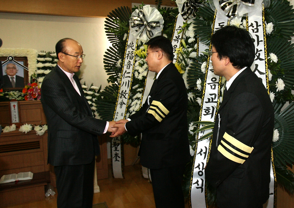 Á¶¿ë±â ¸ñ»ç°¡ ±è»óÈ£ ¿ø·Î¸ñ»çÀÇ ºó¼Ò¿¡ ã¾Æ°¡ Á¶¹®ÇÑµÚ À¯°¡Á·°ú Àλ縦 ³ª´©°íÀÖ´Ù.