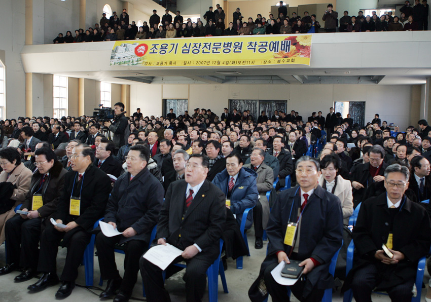 Á¶¿ë±â½ÉÀåÀü¹®º´¿ø Âø°ø½ÄÀÌ 4ÀÏ Æò¾ç ´ëµ¿°±¸¿ª µ¿¹®2µ¿ Á¶¿ë±â½ÉÀåÀü¹®º´¿ø ºÎÁö¿¡¼ ¿·È´Ù. ¶ÇÇÑ Âø°ø½Ä¿¡ ¾Õ¼ ºÀ¼ö±³È¸¿¡¼ ±â³ä¿¹¹è°¡ µå·ÁÁ³´Ù.