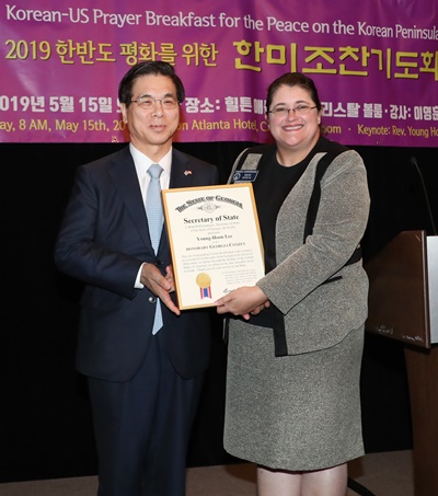 ÀÌ¿µÈÆ ¸ñ»ç°¡ 15ÀÏ ¹Ì±¹ Á¶Áö¾ÆÁÖ ¾ÖƲ·£Å¸ ÈúưȣÅÚ¿¡¼ ¿©¸° Çѹ̱⵵ȸ¿¡¼ ¸»¾¸À» ÀüÇϰí ÀÖ´Ù. ÀÌÀÚ¸®¿¡¼ Á¶Áö¾ÆÁÖ Á¤ºÎ´Â ÀÌ¿µÈÆ ¸ñ»ç¿¡°Ô ¸í¿¹½Ã¹ÎÁõÀ» ¼ö¿©Çß´Ù. ±è¿ëµÎ ±âÀÚ