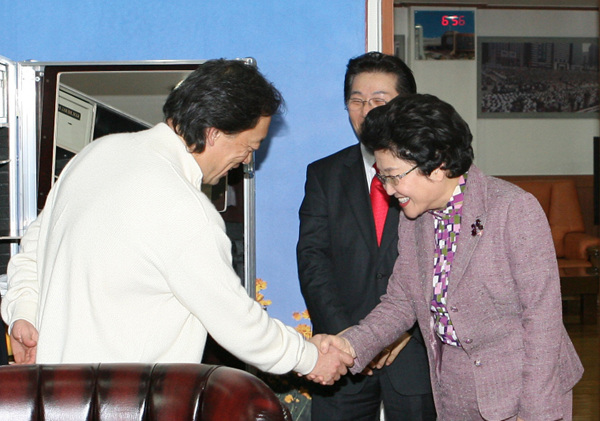 À½¾Çȸ¿¡ ¾Õ¼ Á¤¸íÈÆÁöÈÖÀÚ¿Í ÇѼ¼´ë ±è¼ºÇýÃÑÀåÀÌ Àλ縦 ³ª´©°í ¾ú´Ù.